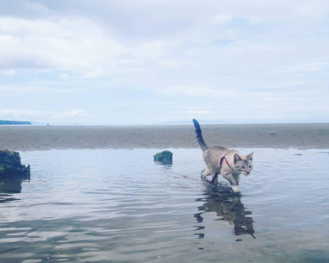 “Its funny because your page actually inspired us to take him out hiking,” Keshia shared. “A few weeks after we got Shasta, we were scrolling through Instagram and found the Adventure Cats page. We have always taken our dogs with us hiking so that got us thinking that we could try this with Shasta. That same day we went to the pet store and bought him a harness.”