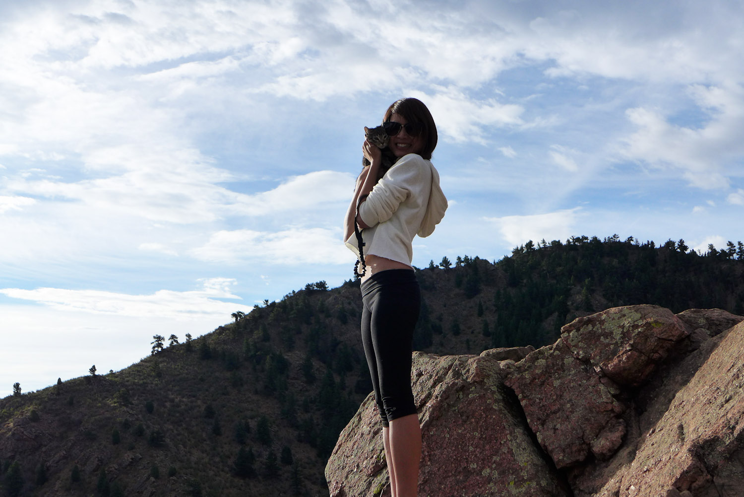 While they’re hiking, Nguyen keeps an eye out for dogs and wildlife so she can scoop up her kitty if anything approaches. “Due to her small size, she is a target for wildlife predators, so I carry around bear spray in case an animal spots her from afar.”