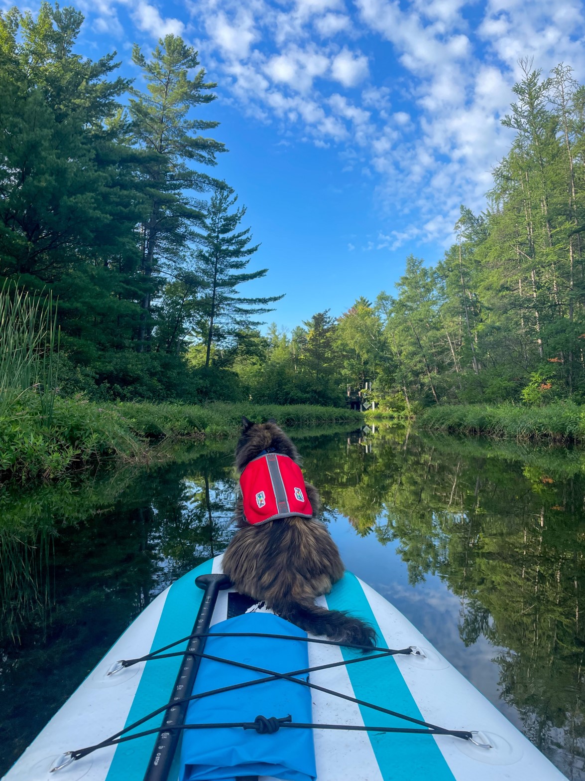”I decided to take her paddling with me because she has done everything with me since I’ve gotten her,” Horkan says. “We have gone on two road trips in my Subaru across the country, biking, hiking, and now kayaking!”