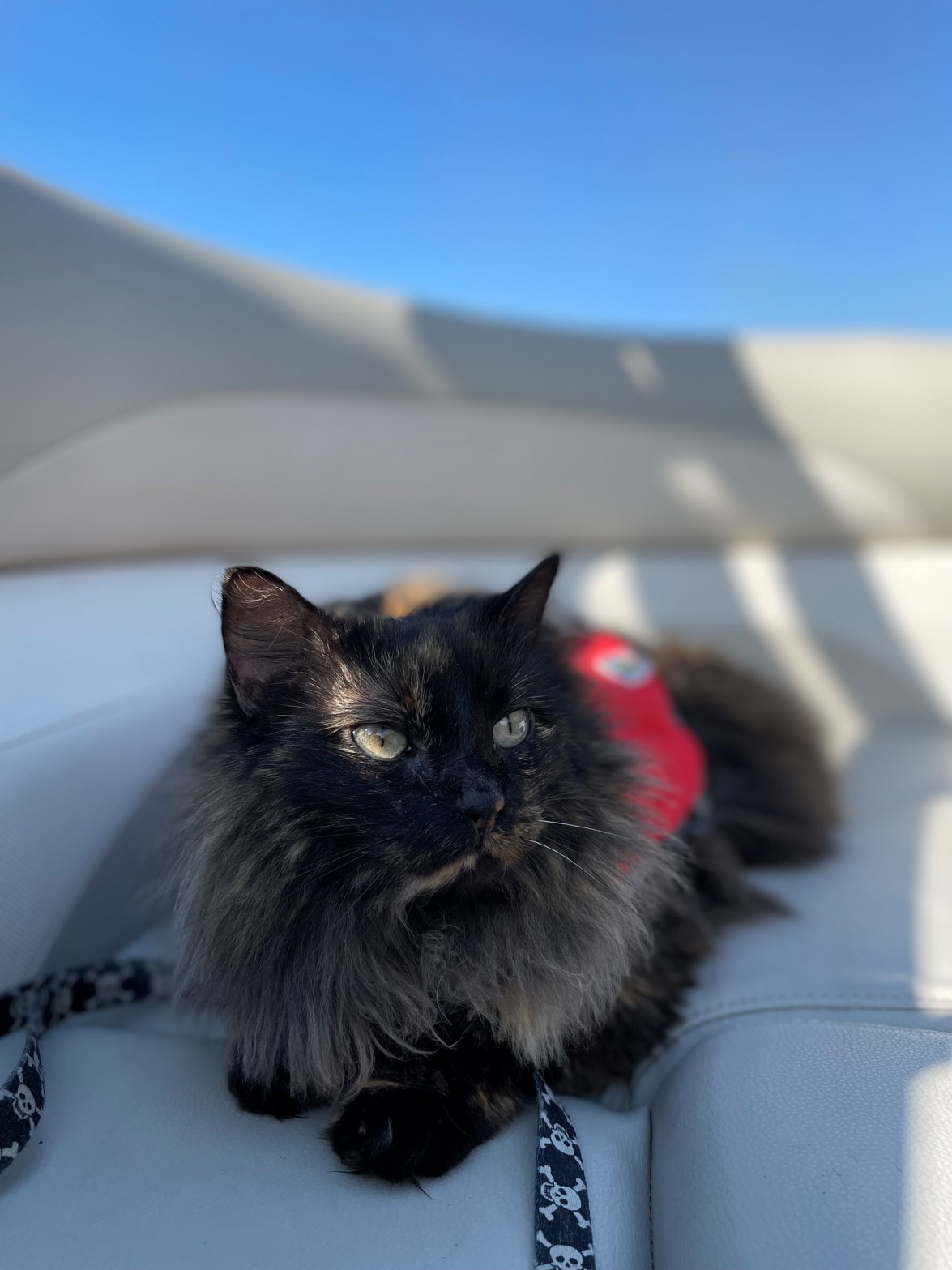 Horkan only paddles with Ruby in the morning, which makes it easier to monitor her breathing. (And, as a long-haired cat, Ruby could overheat during warmer hours.)