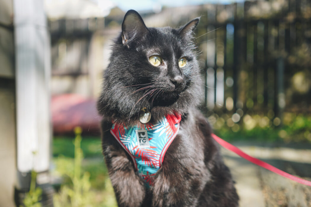 Harnesses are particularly important because it’s unsafe to attach a leash directly to a cat’s collar. Unlike dogs, cats have soft throats and can choke if walked this way.