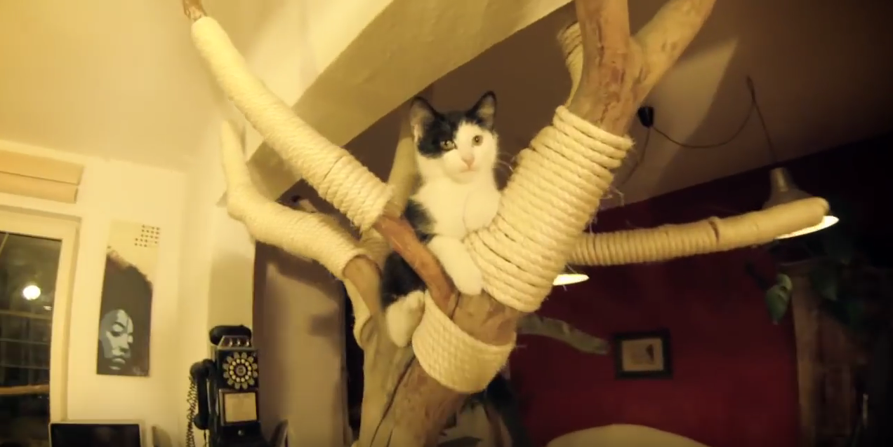Add a little touch of nature to your home décor with this homemade cat tree made from a real tree. In this video, YouTube user TheTypehype details how he built a one-of-a-kind cat tree for his kittens using a fallen tree branch and store-bought sisal rope.