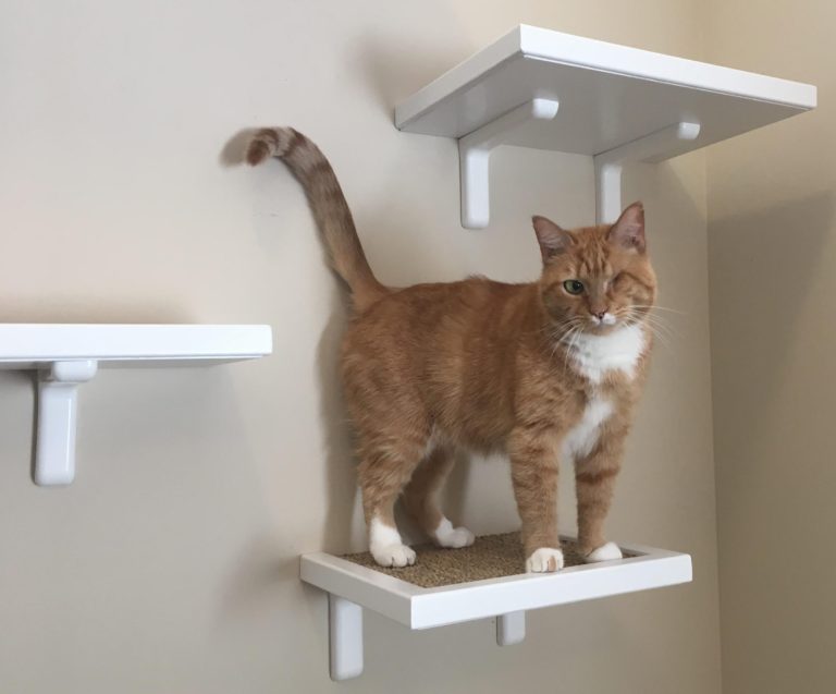 If any of the expert tips above intimidate you, try simply installing shelves from a home-goods store like IKEA. After installing the shelves, try putting a bit of catnip or a favorite toy on one of the shelves to let your kitty know they’re all for him. Your cat will be up on the shelf enjoying his vertical space in no time!