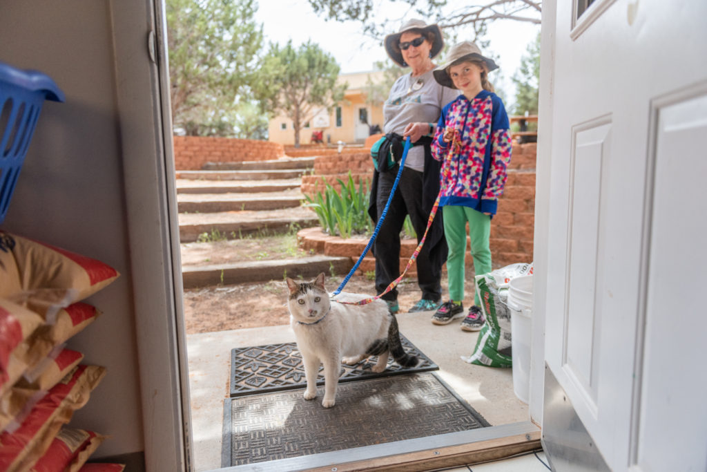 A rescue kitty enjoys a walk at the BFAS sanctuary. (Photo: Best Friends Animal Society)