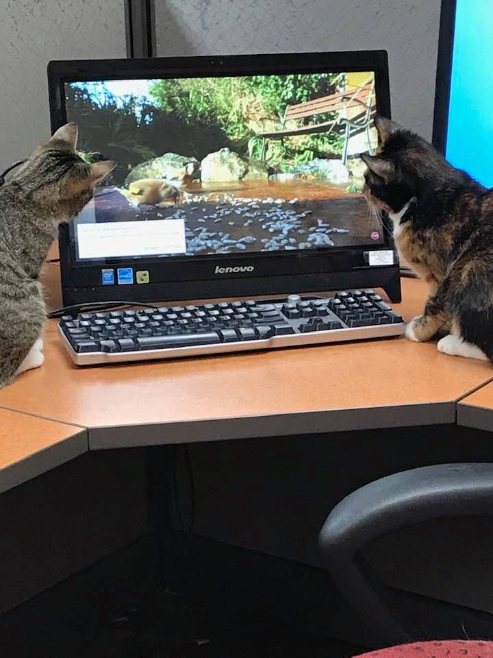 Ziggy and Silke aren’t actually IT cats; they’re just enjoying a little high-tech enrichment. (Photo: Furkids)