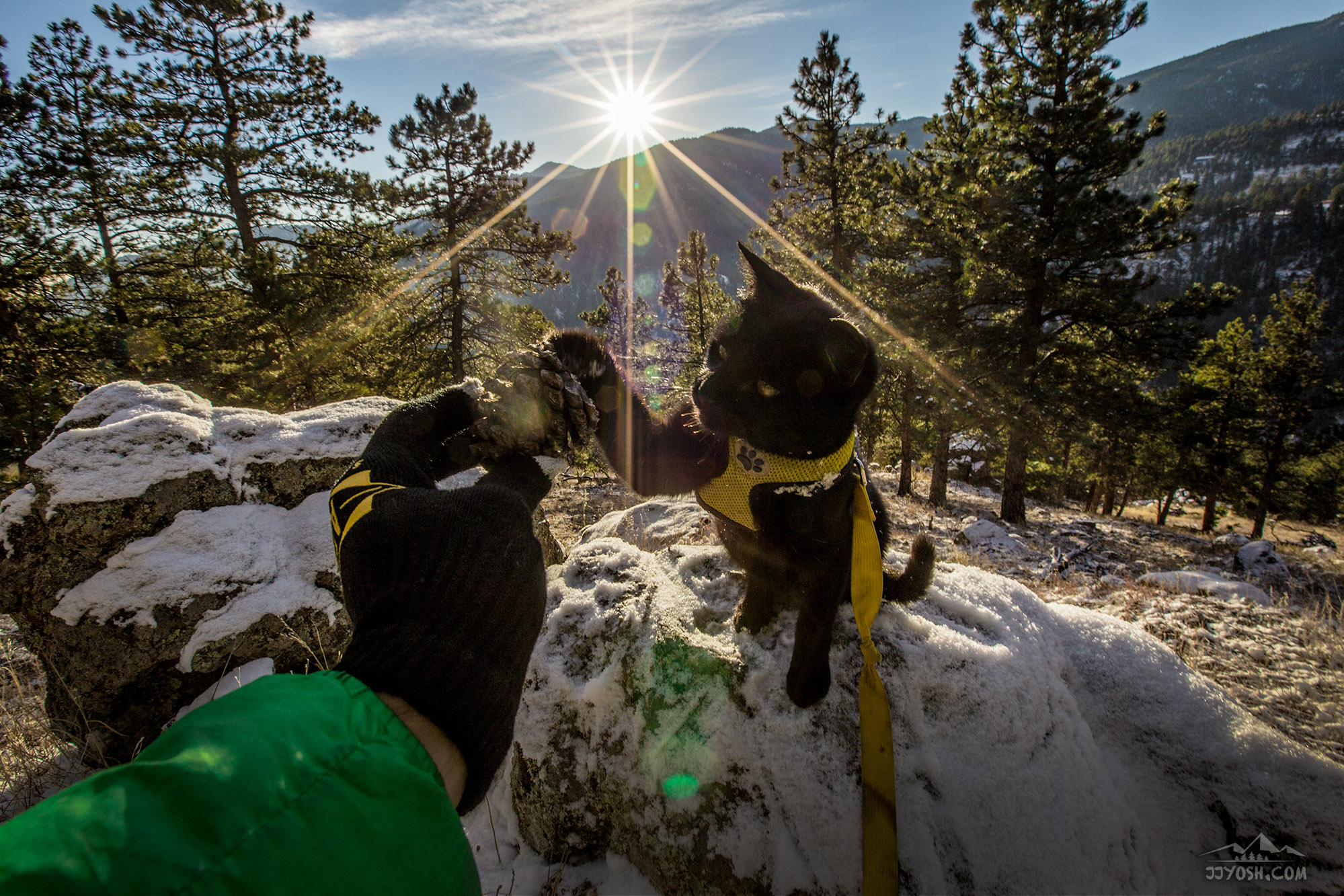 But living in the mountains of Colorado, you often see people climbing peaks with their dogs, and there have been many moments where I envied those people and imagined myself with a doglike companion that I could take wherever I go. However, being a cat person, that was kind of a tricky dilemma.